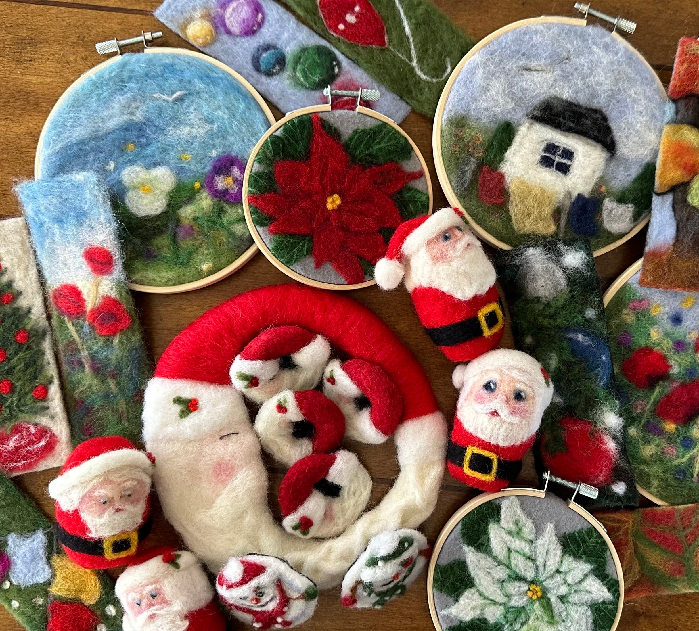 Experience the magic of unique gifting with our learn to felt kits, ornaments, mugs and Original Art! Unleash your creativity this holiday season!